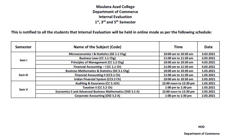 Schedule:B.Com. Hons & Gen Semester Examination (Internal)2020